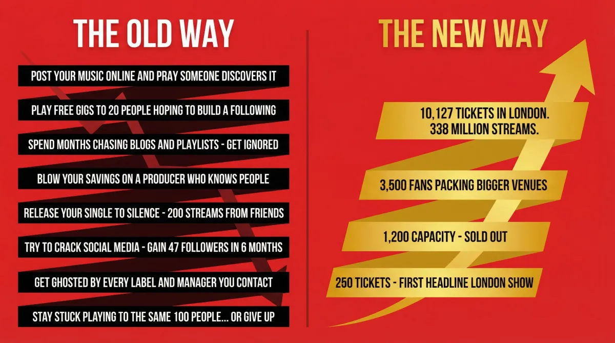 I'm giving you the full story of how I took an unknown band from zero to 10,127 tickets in London, 338 million streams, and 85,000 tickets sold - in under two years, without a major label.